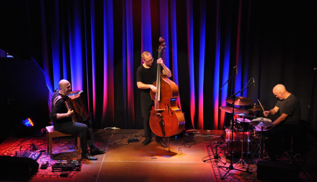 Die Art, nach der hier Energie und Ausdruckskraft des klassischen Tangos mit modernem Sound verschmilzt, sucht ihresgleichen: Elemente aus der Cajun-Musik Louisianas mischen sich mit der Rohheit des Balkans, französische Musette trifft auf orientalische Klänge; hinzu kommen bisweilen gar House Bass Drum oder Wah-Wah und Verzerrer beim Akkordeon, wie auf dem aktuellen Album „Akrobat“ zu hören ist. Dieses enthält neben Kompositionen der Band erstmals auch drei Bearbeitungen (Roger Waters „Brain Damage“, Astor Piazzollas „Libertango“ und F. Mendelssohn Bartholdys „Elfentanz“) und ist das Ergebnis einer intensiven Zusammenarbeit von drei außergewöhnlichen Instrumentalisten.